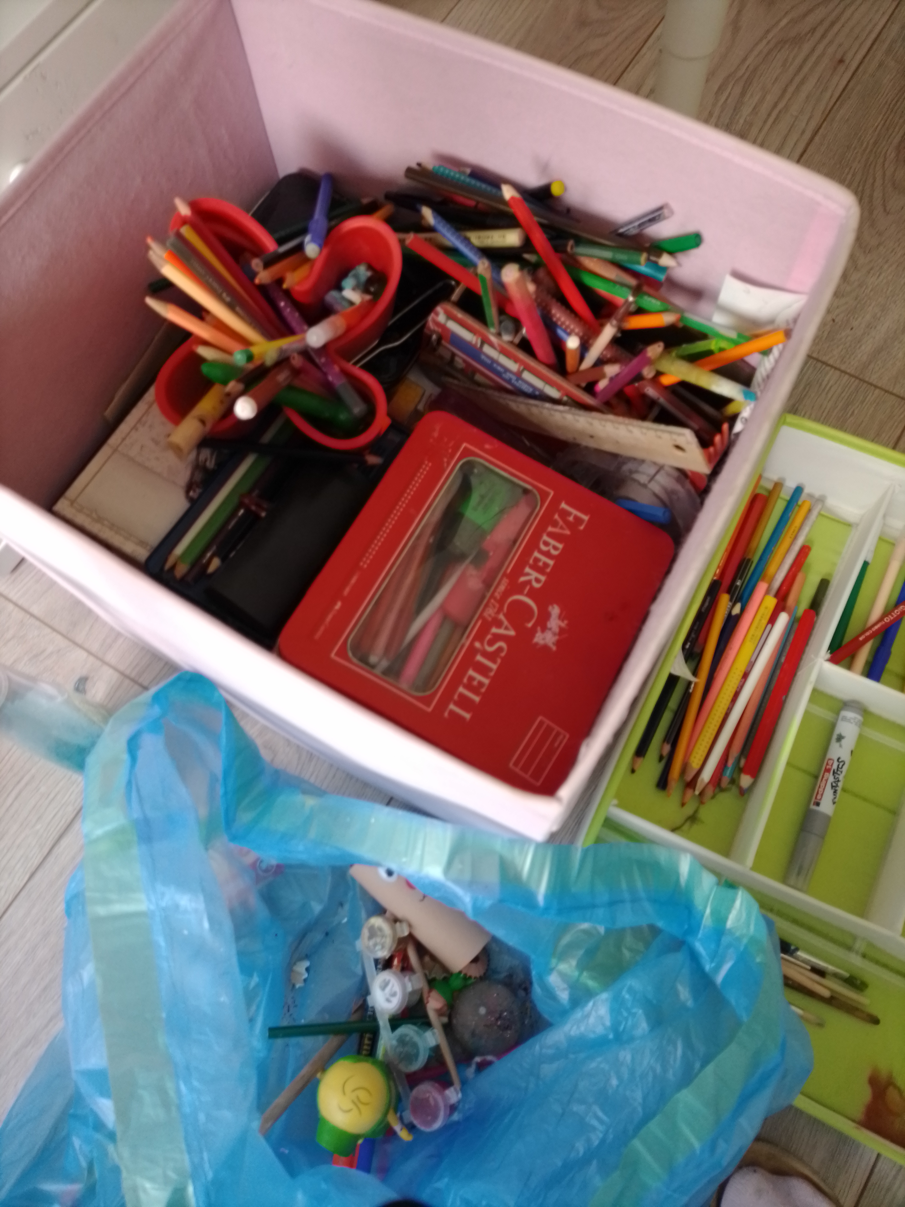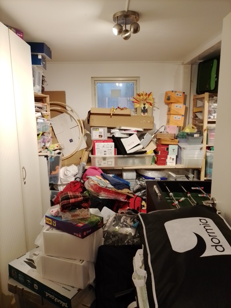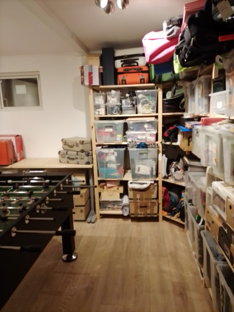 Overwhelmed by all the boxes I had left over from our different movings over the last 20 years… I decided to tidy up my cellar (3 rooms filled with successive layers of storage from several movings and from my children’s belongings).